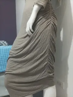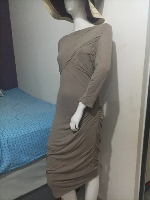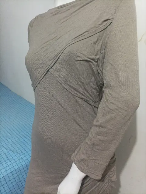 Vestido Ann Taylor color café bajito con fruncido en cadera y cruce en busto, incluye zipper lateral izquierdo, a la rodilla y manga 3 cuartos. Muy cómodo y hermoso