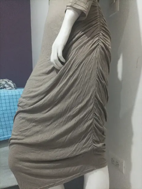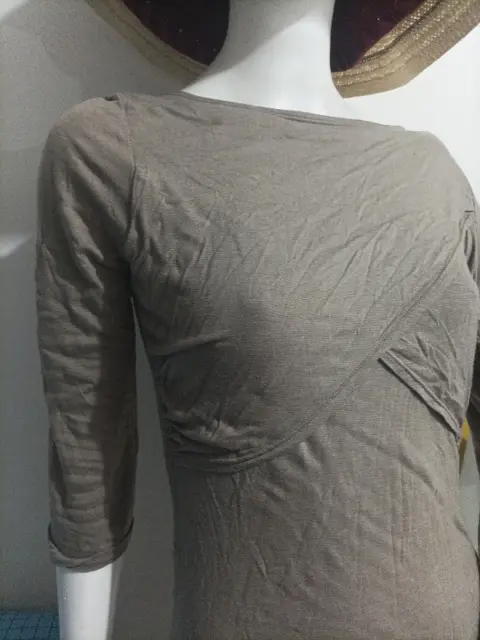 Vestido casual de algodón.. Vestido Ann Taylor color café bajito con fruncido en cadera y cruce en busto, incluye zipper lateral izquierdo, a la rodilla y manga 3 cuartos. Muy cómodo y hermoso