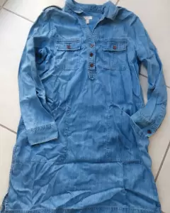 Vestido casual de mezclilla, perfecto para usar con unos tenis. Es holgado entonces hay una posibilidad de que pueda queda a G.