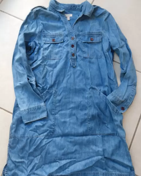 Vestido casual de mezclilla. Vestido casual de mezclilla, perfecto para usar con unos tenis. Es holgado entonces hay una posibilidad de que pueda queda a G.