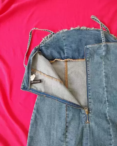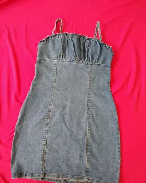 Vestido casual de mezclilla H&M, talla S.Tiene un cierre en la parte trasera.Mide 40 cm en cintura como se ve en la foto dea cinta métrica.