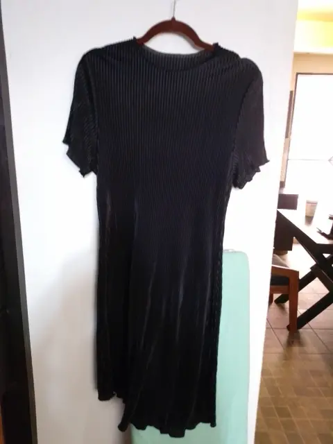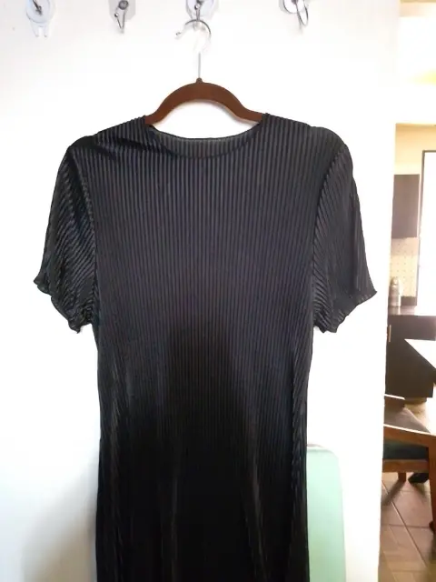 Vestido casual de tela acanalada 98 cm pecho, 92 cm cintura, 92.5 largo, la etiqueta dice 2xl pero esta muy reducido, queda a una talla L.Envio a la brevedadTodas las compras incluyen obsequio
