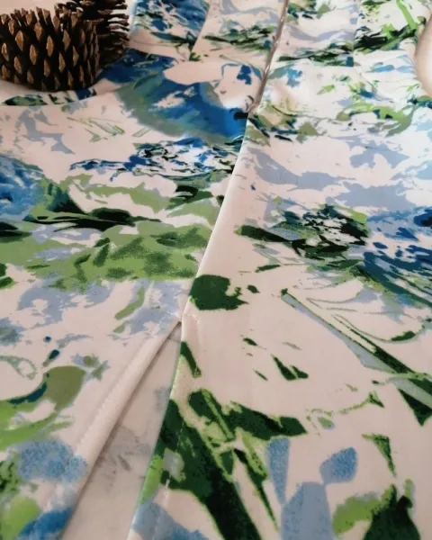 Vestido casual con estampado verde, azul y negro. La tela estira un poco, llega a la altura de la rodilla. 🌻