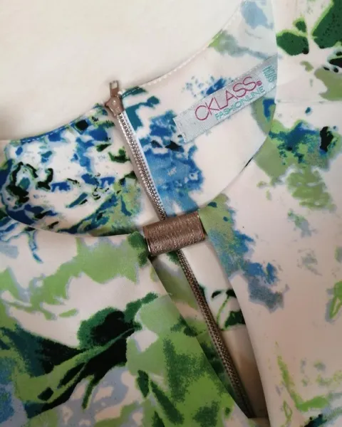 Vestido casual estampado. Vestido casual con estampado verde, azul y negro. La tela estira un poco, llega a la altura de la rodilla. 🌻