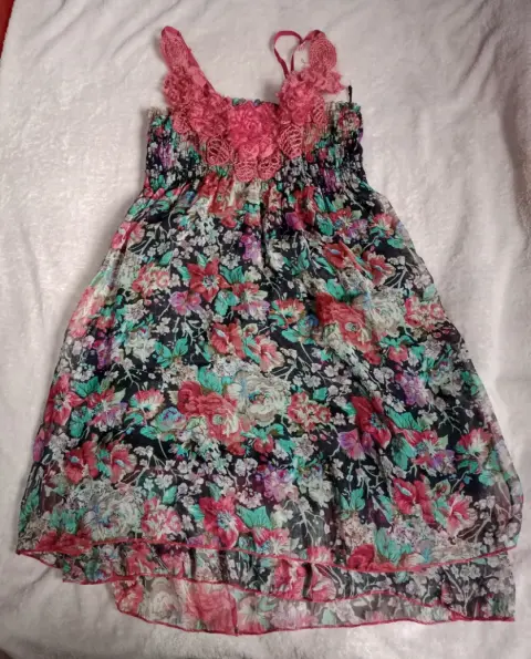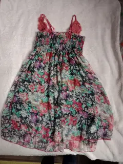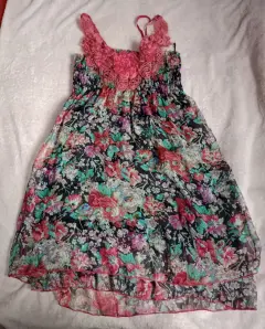 Vestido casual floreado. Vestido casual corto, con flores de encaje en los tirantes, en buen estado, usado una sola vez
