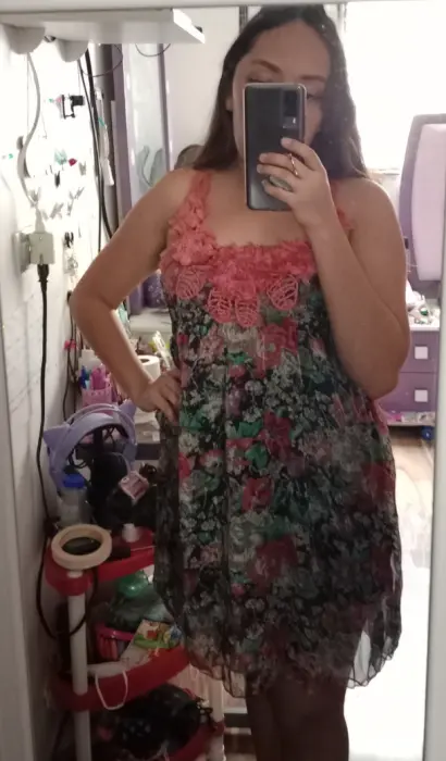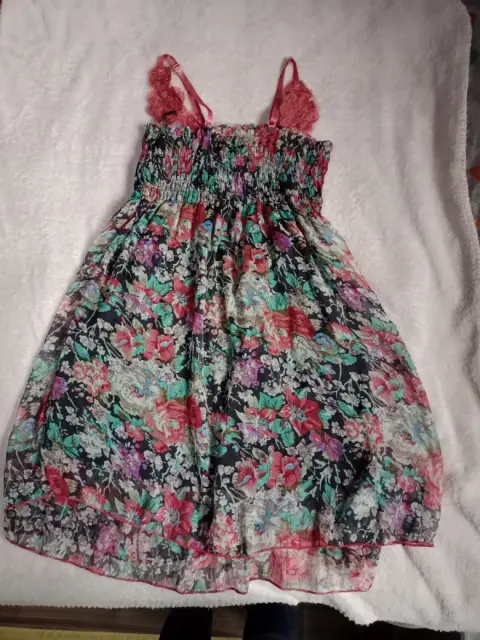 Vestido casual corto, con flores de encaje en los tirantes, en buen estado, usado una sola vez