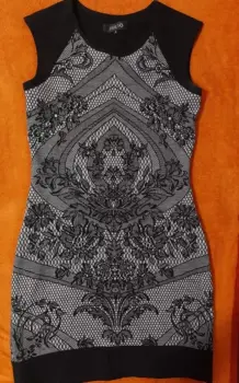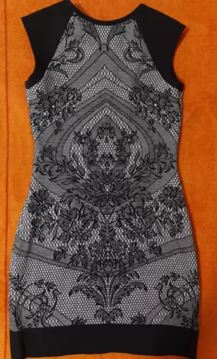 Tela de punto, estira un poco, talla 8, medidas: cintura 40 cm, axila a axila 44 cm, largo 94 cm, usado dos veces sin detalles