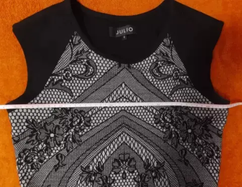 Vestido casual Julio. Tela de punto, estira un poco, talla 8, medidas: cintura 40 cm, axila a axila 44 cm, largo 94 cm, usado dos veces sin detalles