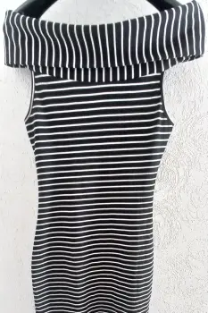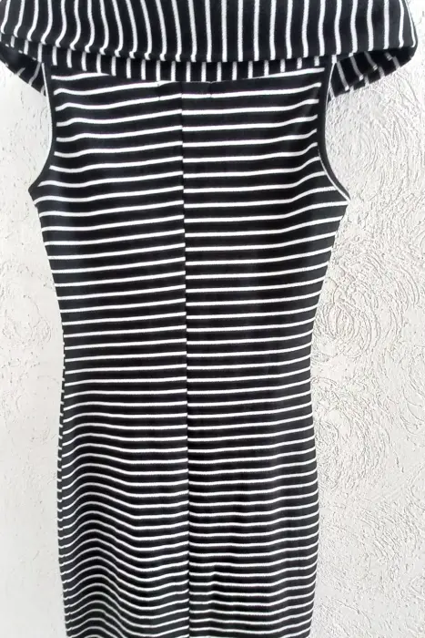 Vestido casual lineal. Vestido entubado lineal a la rodilla con hombros descubiertos. Buena forma al cuerpo.