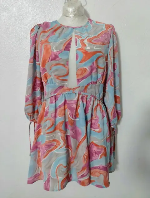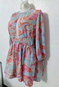 Vestido casual manga larga. Es un bellisimo VestidoTipo formal/casualCorto con transparencia al frente (tela mesh)Luce hermosoTiene cierre al costadoTalla L
