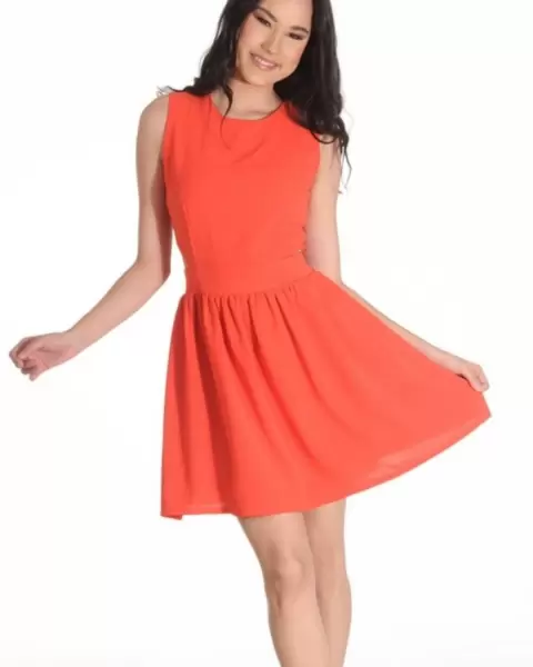 Hermoso vestido naranja, arriba de la rodilla, puede ser casual o formal, en la parte de atrás tiene escote y un moño muy lindo.MedidasLargo: 86 cmCintura: 31cmAmplio de la faldaSi tienes alguna duda estoy para ayudarte.