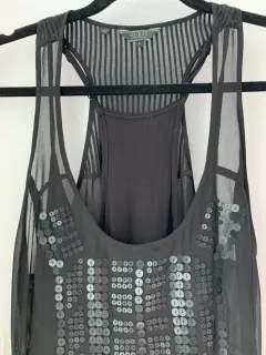 Vestido Negro con lentejuelas de GUESSMedidas: 27 de Hombro a Hombro93 de Largo, 94 de cintura . Sin detalles.