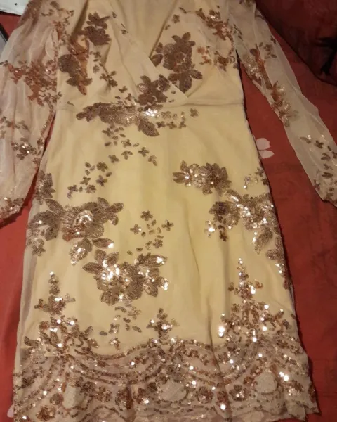 Vestido super bonito color crema-beige con bordado en lentejuelas