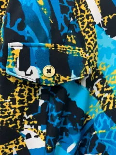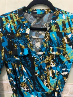 Vestido midi, manga larga, con 2 bolsillos enfrente y botones a medio pecho. Tela de poliéster.Medidas/ espalda: 37 cm, busto: 43 cm, cintura: 39 cm, largo: 91 cm, largo de mangas: 43 cm.