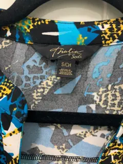 Vestido casual Thalía Sodi. Vestido midi, manga larga, con 2 bolsillos enfrente y botones a medio pecho. Tela de poliéster.Medidas/ espalda: 37 cm, busto: 43 cm, cintura: 39 cm, largo: 91 cm, largo de mangas: 43 cm.