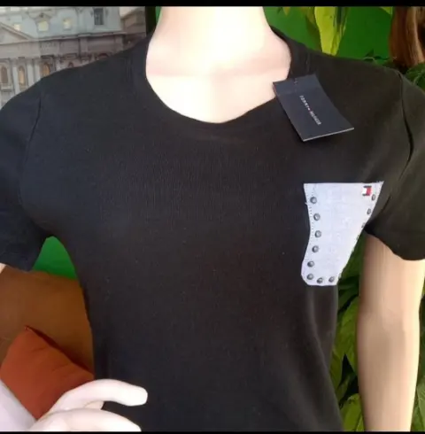 Vestido casual TOMMY HILFIGER. Vestido color negro estilo camiseta, escote redondo. Bolsillo de parche al frente con logo de la marca bordado al pecho. Manga corta.Talla M- hombro a hombro: 40cm- Axila a axila: 43cm- Largo: 88cmMaterial:👉100% algodónMarcas originales importadas de USA.