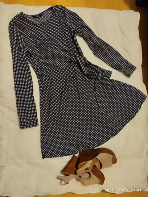 Vestido circular. Vestido de cuadritos azul con color palo de rosa