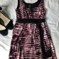 Vestido sin mangas, rojo con negro, con resorte en la parte de abajo nuevo
