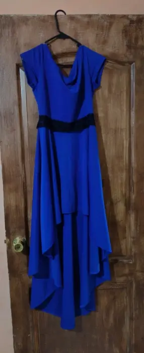 Vestido Coctel. Tiene colita larga, y de enfrente es corto. Lo usé en dos fiestas diferentes y para que no pareciera el mismo y los accesorios fueran diferentes le mandé poner un encaje en la parte donde va la cintura.Es unitalla, sin detalles.