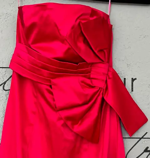 Vestido cóctel. Vestido marca Lob, color Magenta, talla 3, strapple, a la rodilla, tela muy suave.