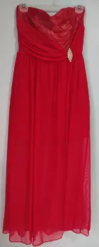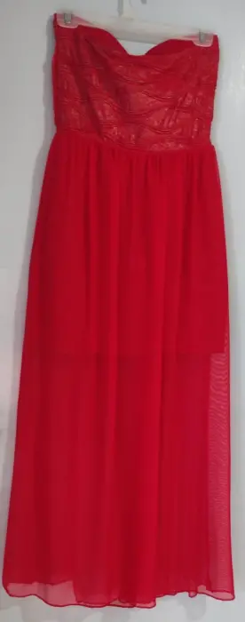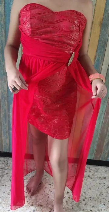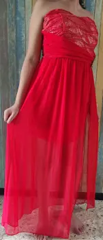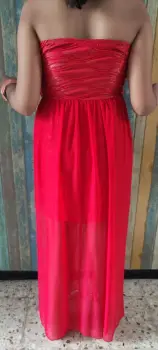 Cómodo y ligero vestido de coctel color coral, Max Rebo✅ strapless con copas incluídas✅ vestido spandex 44 cm de cintura hacía abajo✅ gasa al piso con largo de 98cm✅ incluye broche
