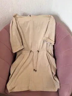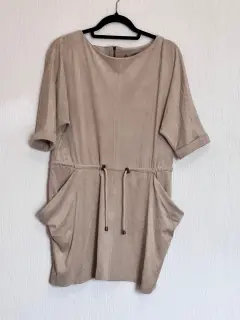 Vestido color arena Sfera, tipo gamuza, se ajusta a tu gusto a la cintura, se puede usar con mayas, tenis, tacones, etc. Esta divino 🫰🏼✨