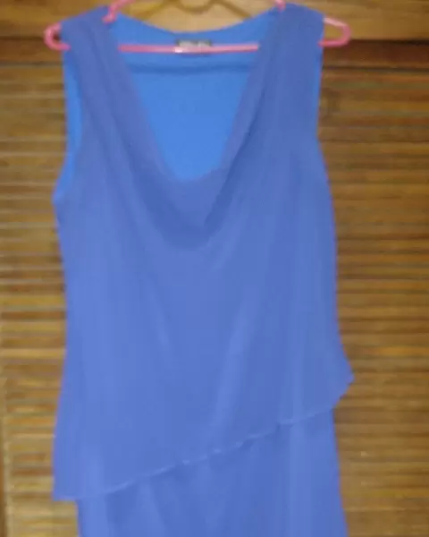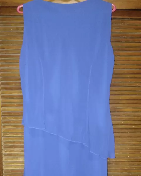 Vestido abajo de la rodilla, circular, en color azul rey, es sin manga .Asimila un holan en la parte de enfrente, es talla 13.Se encuentra en perfecto estado