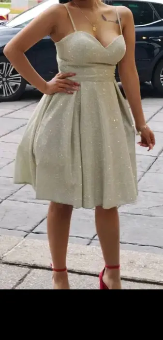 Una sola puesta... Vestido color champagne talla CH se encuentra en perfectas condiciones