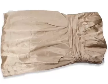 Vestido color champán de cocktail con drapeado en el escote tela brillosa con muy buen peso para darle una linda caída al vestido, ideal para graduaciones, bodas, fiestas, eventos, cena.