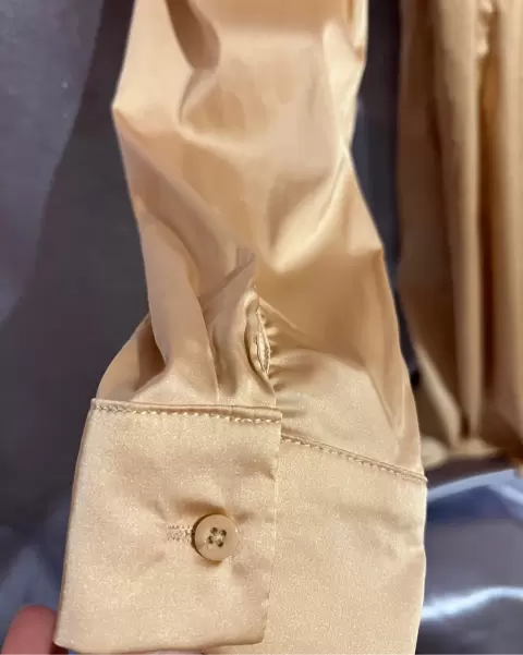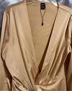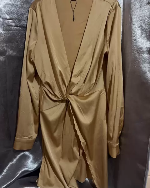 Vestido color dorada. No tiene detalles.Llega arriba de la rodilla.
