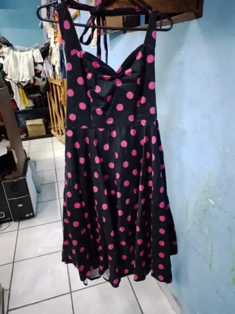 Vestido color negro con bolas rosa mexicano. Vestido color negro con bonitas rosa mexicano talla grande estira poco