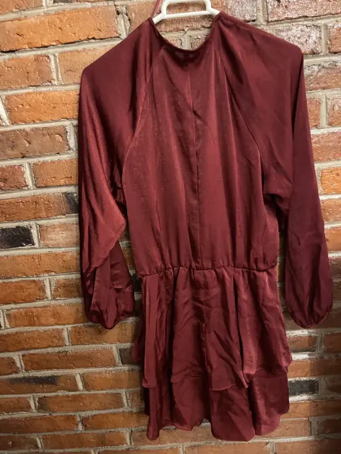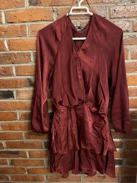 Vestido color vino. Marca: Zara Talla: 30 mexico Resorte a la cintura Vestido de fiesta con holanes