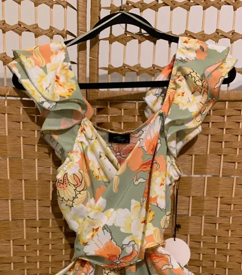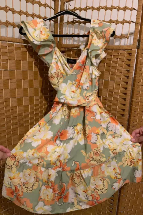 Vestido colores claros muevo con etiqueta. Vestido muy bonito es L pero viene muy reducido queda a S