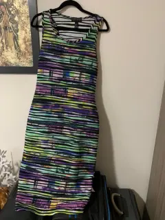 Vestido colorido tipo midi sin mangas marca forever 21 nuevo sin uso no tiene etiqueta es talla XL