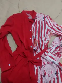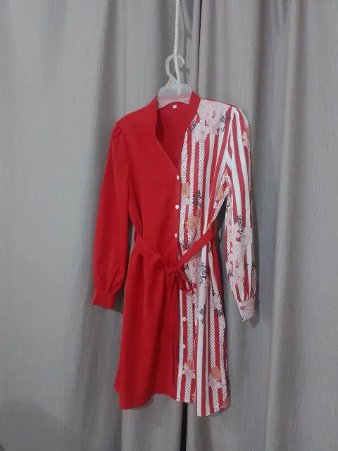 Vestido combinado rojo. Es un vestido nuevo de linda tela con buena caída.Botones delanteros,