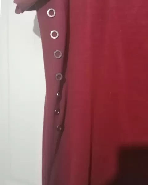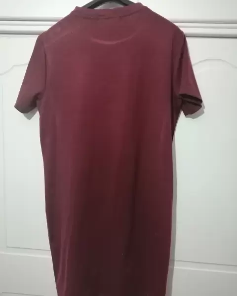 Vestido nuevo sin etiqueta color vino manga corta 95 cm de largo de axila a axila 53 cm poliester 75% viscosa20% 5%elástico de es talla xl 1 pero queda perfecto talla L estira un poco adornos en los laterales y hombros