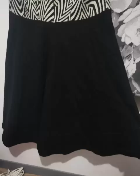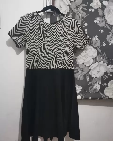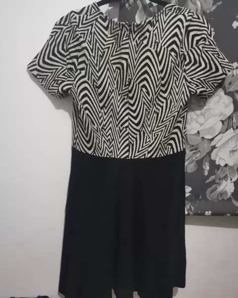 Vestido con blusa cebra. Vestido con falda circular a la rodilla, la blusa se ajusta al busto, costura que realza la figura