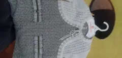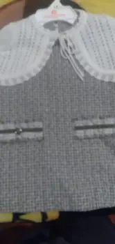 Vestido con chalina para Niña. Vestido verde con gris tejido, chalina tejida color blanco talla 1 año , muy bonito