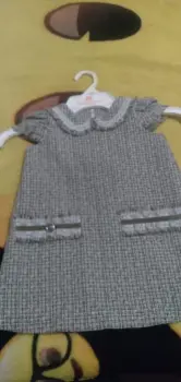 Vestido verde con gris tejido, chalina tejida color blanco talla 1 año , muy bonito