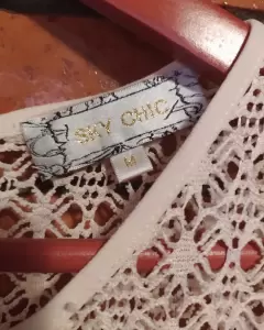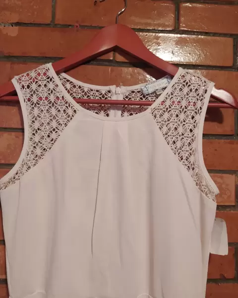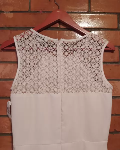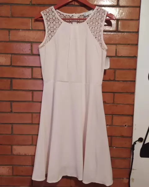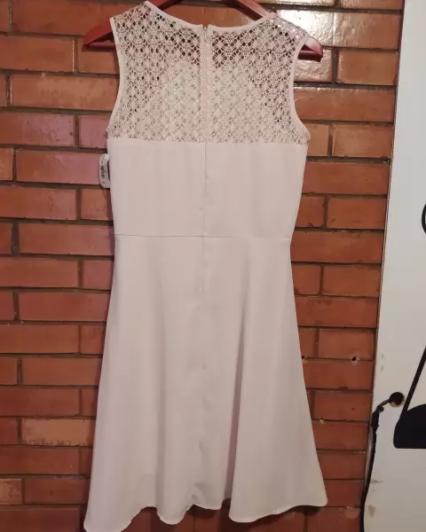 Vestido con crochet SKY Chic. Lindísimo vestido, rosa muy claro, con crochet en pecho y espalda, cierre atrás.