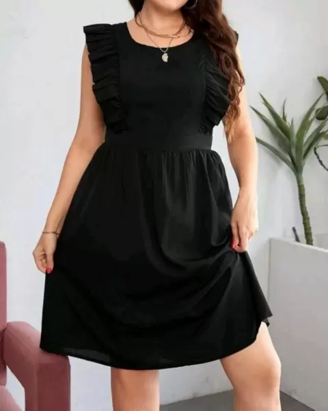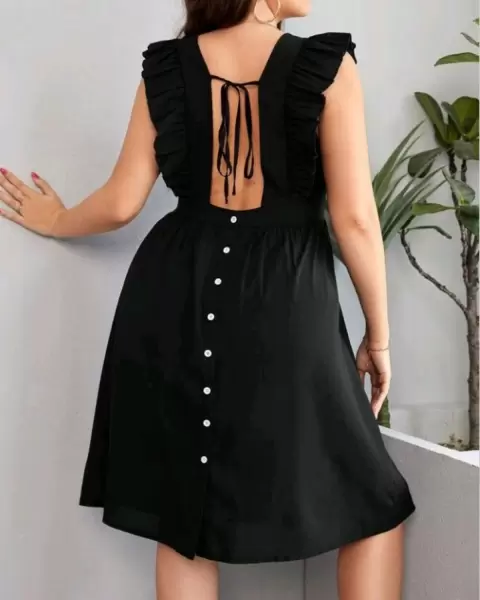 Vestido con escote en ka espalda y diseño de boton, color negro, la tela es poliester, talla 2xl