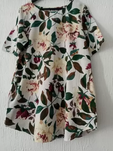Vestido con estampado floral. Precioso vestido floreado manga corta con bolsillos a los costados solo se uso una vez en perfectas condiciones.Largo 82 cm