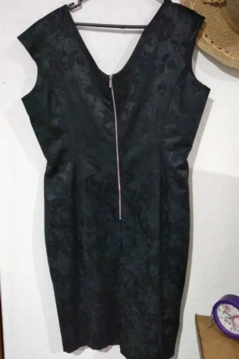 Vestido con estampado flores. Lindo vestido negro con estampado de flores para lucir en la oficina o en una reunion de negocios.