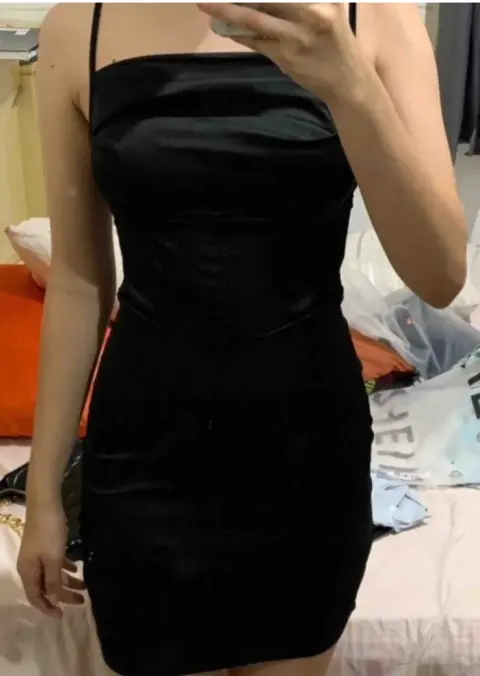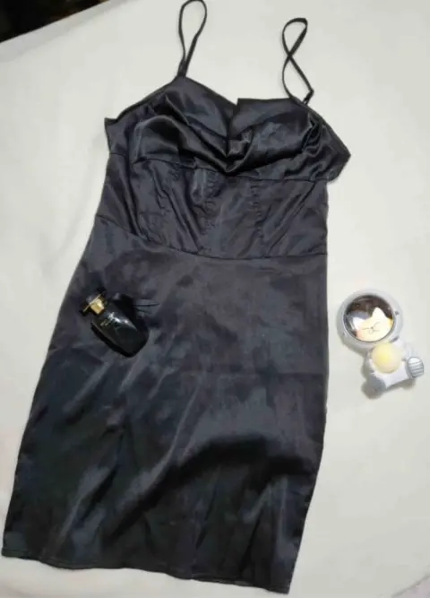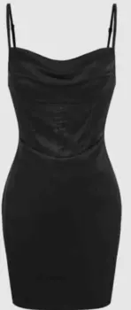 Sexy vestido de tirantes marca SHEIN talla S con escote tipo capa, la tela es algo delgada pero como pueden ver no transparenta.Tiene una pequeña simulación de tipo corset, te hace una figura muy linda!!! Largo: 85 cmCintura: 66 - 70 cm Cadera: 91 cm