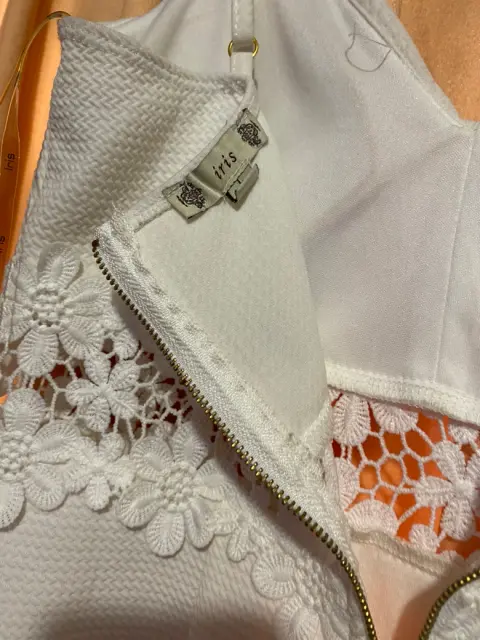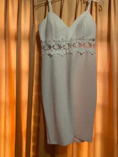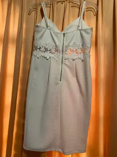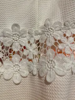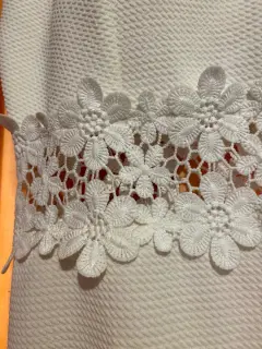 Vestido blanco en perfectas condiciones, sin usar, de talla L con detalles floreados en la cintura.