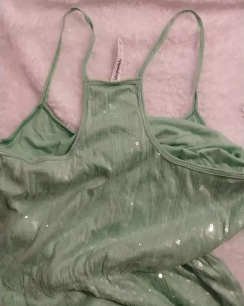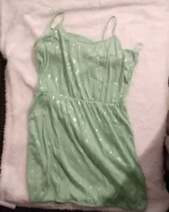 Bonito vestido de algodón con lentejuelas transparentes, tiene forro por lo que no pica nada, en la espalda se hace en uno y en el busto tiene diferente forro, tiene resorte en la cintura