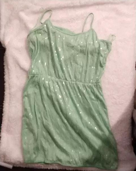 Vestido con lentejuelas. Bonito vestido de algodón con lentejuelas transparentes, tiene forro por lo que no pica nada, en la espalda se hace en uno y en el busto tiene diferente forro, tiene resorte en la cintura