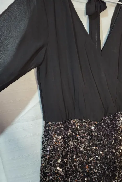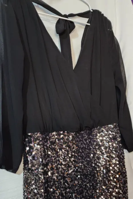 Vestido con lentejuelas. Vestido de noche corto mide 90cm en la parte de arriba es como velito y de lentejuela, puesto dos veces