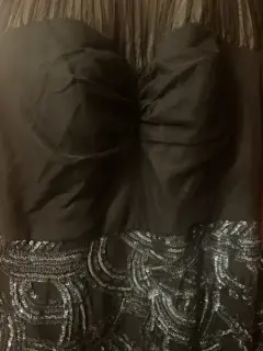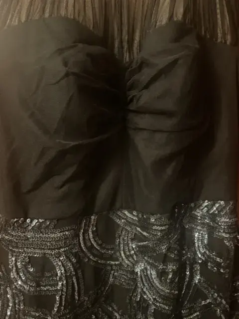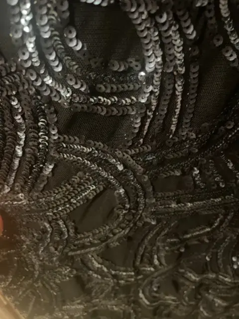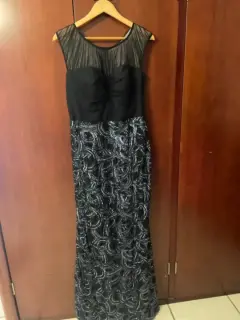 Vestido con lentejuelas negro y azul. Vestido largo en negro son mangas con lentejuelas negra azul y plata