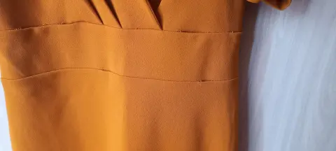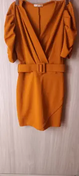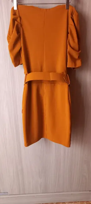 Vestido con mangas abullonadas. Es un color terracota Talla Mediana